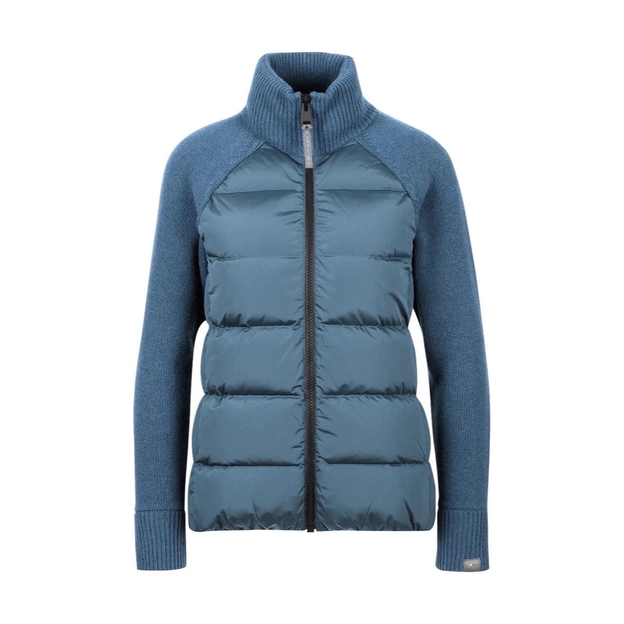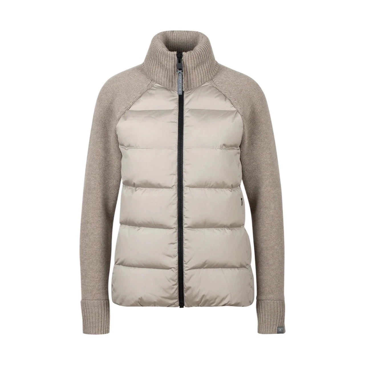 - | Full zip YKK Vislon zippers, Two hand pockets, Horizontal front quilting down, Raglan sleeve, Rib pattern collar and double layered cuffs