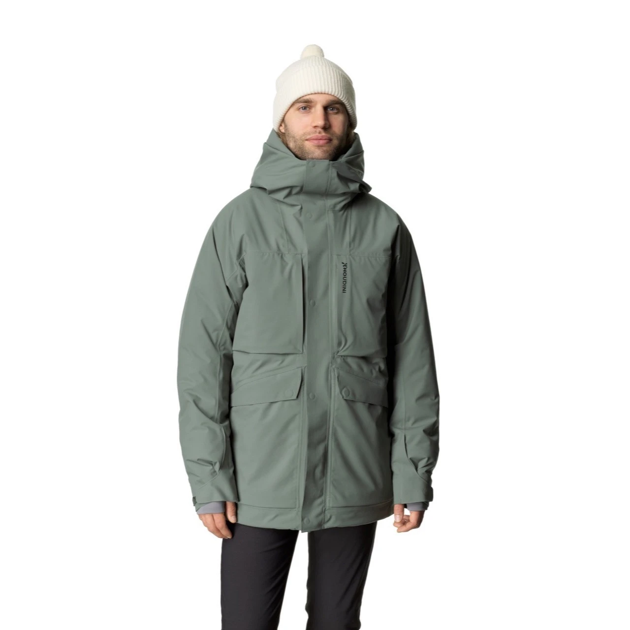 The Houdini Fall In Jacket will make you feel warm and fuzzy all the way inside. Fall In Jacket will shelter you from any snowstorm and the comfort is really something special. In the development process of Men’s Fall In Jacket, the goal was to bring the comfort of a padded jacket to the next level. To achieve the feeling of wearing a warm, fluffy cloud, we work only with soft, silent and stretchy fabrics. Combined with a light and warm Primaloft® padding, you get a winter jacket that feels like a dream and still does the job of a much heavier garment. The outer fabric is called Surpass 2,5 layer Hardshell. It’s fully waterproof and will keep you dry in any rain, snow or sleet. The insulation is Primaloft Silver, a light, warm and highly compressible synthetic padding. We prefer synthetic padding for its performance benefits but also because we don’t believe in stealing the feathers off birds to keep ourselves warm. The Jacket has a large, 2-way adjustable hood and heat barriers around the neckline and bottom hem. You have all the pockets you can ever ask for: Two external chest pockets, two hand pockets, one inside chest pocket and one inside mesh stash pocket.