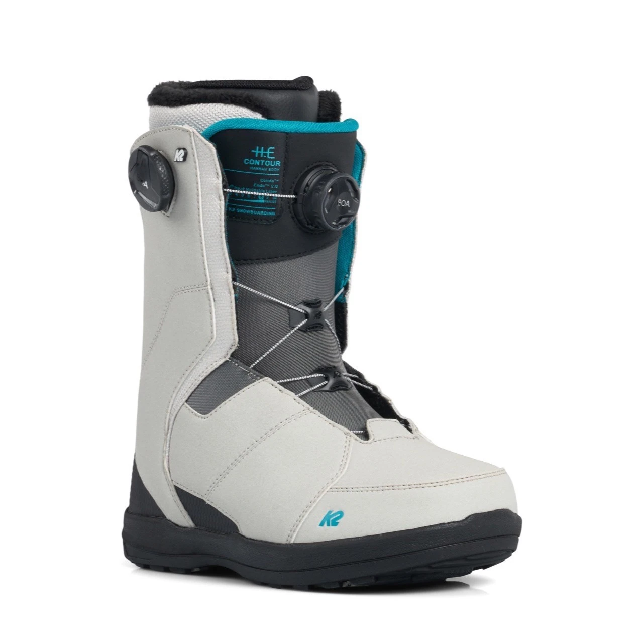 The K2 Contour Women’s Snowboard boot is crazy comfortable, easy to adjust, and provide dialed, predictable performance. Equipped with the BOA Conda Lacing System which uses a urethane harness to gently hug your ankle, creating unrivaled heel hold this boot will give a comfortable snug fit all day long.This also comes with the rubber reinforced articulating cuff upper that is placed in areas of high stress to extend the life of the boot and increase durability which leads to more time on the slopes season after season. The Harshmellow sole is strategically placed to dampen vibration underfoot to provide for a more “quiet” feel underfoot, reduce vibration from impact, and reduce fatigue while snowboarding.