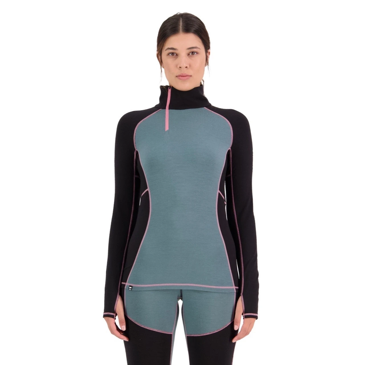 - | Half zip for ventilation, Raglan sleeves for ease of movement, Merino mesh underarm panels, Flatlocked seams to prevent friction, Thumb loops.